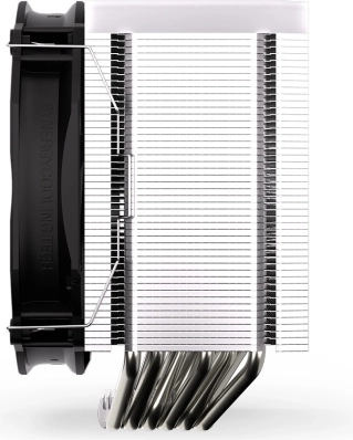 Zes massieve heatpipes en een precisiebewerkt koelblok voeren warmte efficiënt direct van de processor af. De ventilator met gegolfde bladranden vermindert psycho-akoestische ruis en biedt een optionele semi‑passive werking voor absolute stilte bij lage belasting.