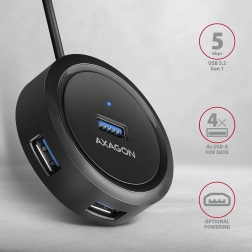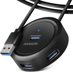 USB hub AXAGON maakt het eenvoudig en snel mogelijk om tot vier USB-apparaten aan uw computer te koppelen. Dankzij het unieke ronde ontwerp heeft het uitstekende afmetingen en is het zeer praktisch.
