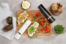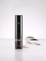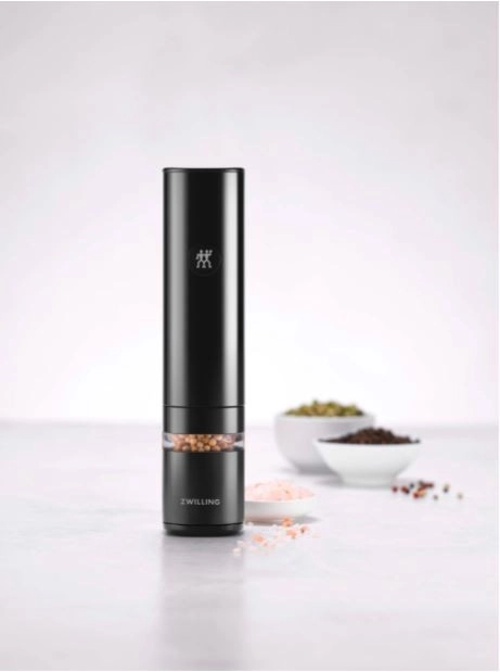 De elegante elektrische kruidenmolen ZWILLING ENFINIGY in het zwart zorgt voor snel en gelijkmatig malen van zout, peper en kruidenmixen. Voor precieze resultaten zorgen de keramische maalstenen met lange levensduur, de traploos instelbare maalgraad, de krachtige motor en de oplaadbare Li‑ion-accu. Praktische LED-verlichting en een kijkvenster maken het kruiden en het controleren van de voorraad eenvoudig.