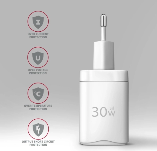 Geavanceerde “Super silicon”-technologie (Si) biedt compacte afmetingen, hogere efficiëntie en stabiel, veilig laden. De WIV (Wide Input Voltage) functie maakt gebruik in een breed spanningsbereik van 100–240 V mogelijk, dus een uitstekende keuze voor reizen. Automatische apparaatherkenning AIC en regeling CV/CC optimaliseren de snelheid en het laadverloop.