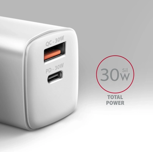 Netlader AXAGON 30W PD & QC met USB‑C en USB‑A wit