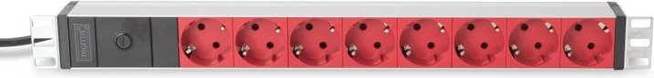 19″ rack-stekkerdoos DIGITUS, 8× rode schuko-stopcontacten, C14-invoer, kabel 2 m, 10 A, aluminium