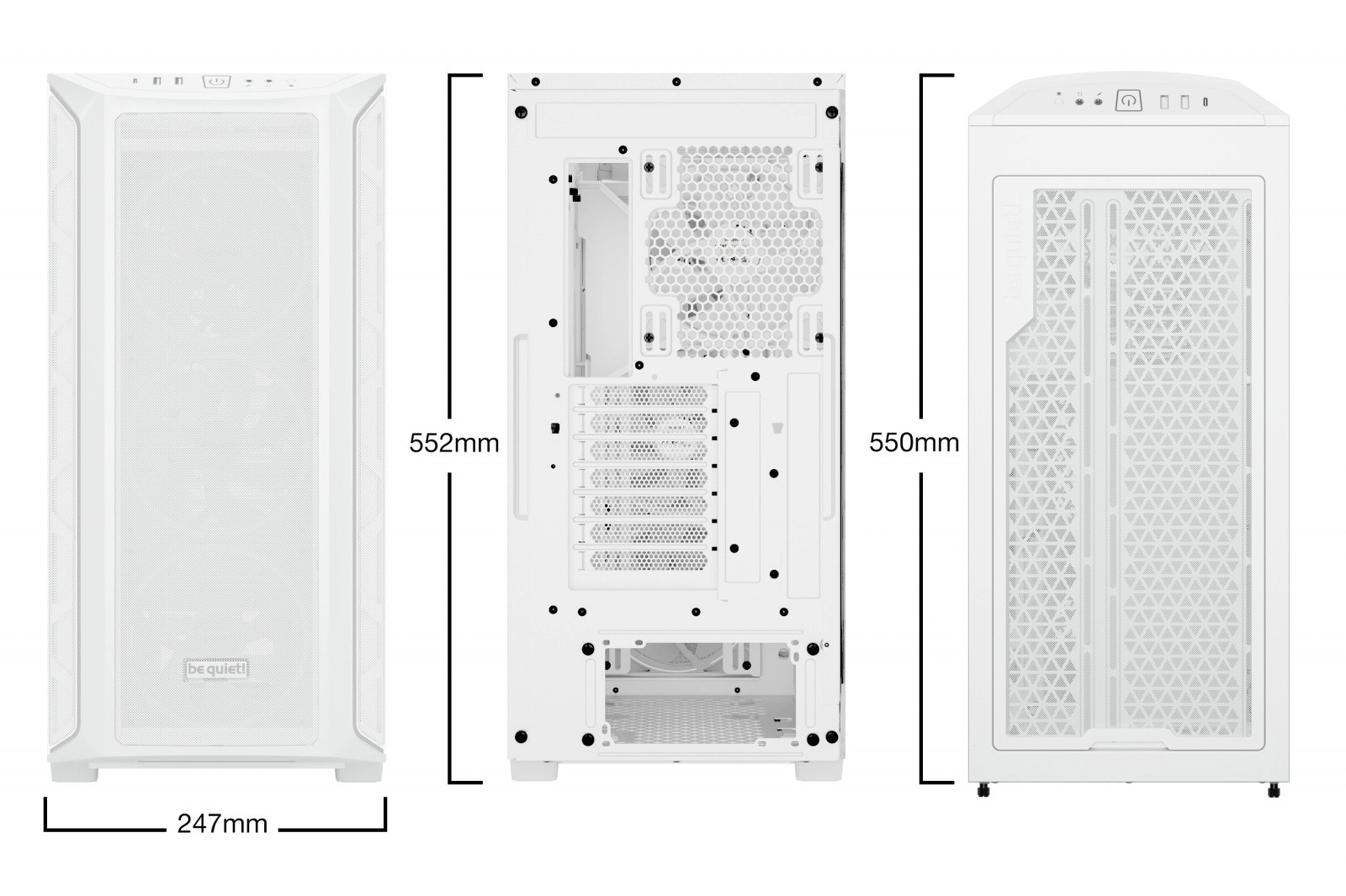 Dankzij vier Light Wings White PWM-ventilatoren is de behuizing geoptimaliseerd voor maximale luchtcirculatie. De ventilatoren zijn stil en efficiënt, aangesloten op een hub die tot 8 apparaten ondersteunt.