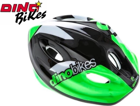Veiligheidshelm van de Italiaanse fabrikant Dino Bikes in een zwart-wit-groene kleur is ideaal voor jongens. Het biedt hoog comfort dankzij de verstelbare maat, 5 ventilatieopeningen en zacht kussen.