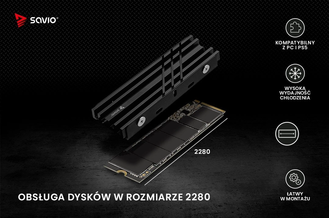 De Savio AK-60-koeler is ontworpen voor standaard SSD’s in M.2-formaat 2280 en voert warmte efficiënt af dankzij de massieve metalen constructie met ribben. Zorgt voor stabiele werking van je NVMe-schijf, zelfs bij veeleisende taken zoals gamen, werken met grote bestanden of videobewerking.