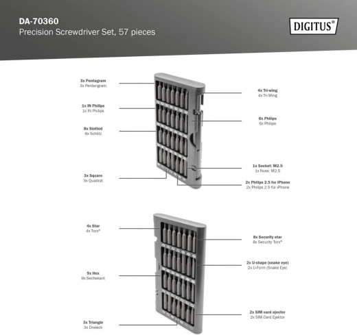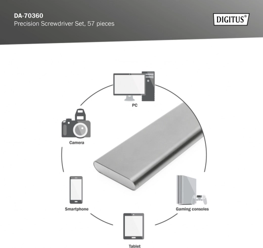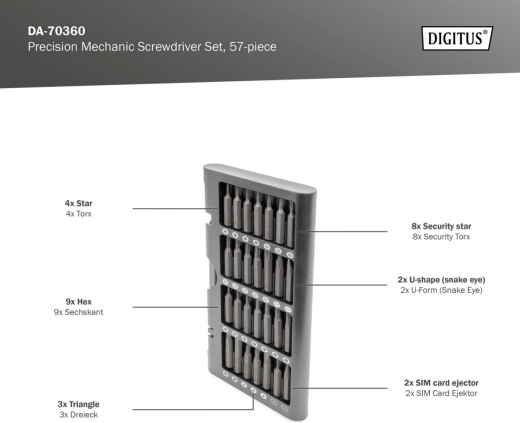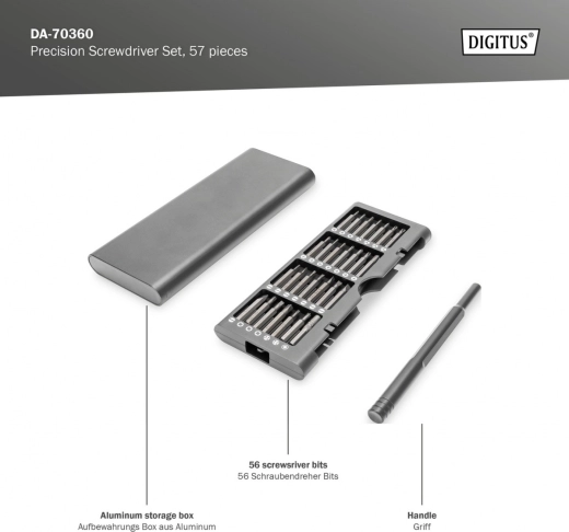 Precisie-schroevendraaierset 57-in-1 DIGITUS in aluminium etui