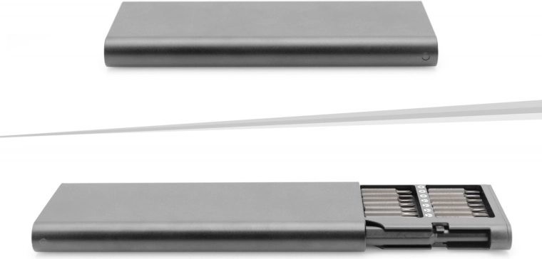 Elegant en robuust etui met dubbelzijdige organizer houdt de bits overzichtelijk geordend en makkelijk toegankelijk, thuis en onderweg.