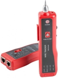 De tester bestaat uit een zender en een ontvanger voor het testen van kabelcontinuïteit en het traceren van aders, met RJ45-poorten als kerncomponent.