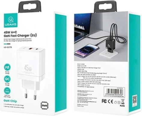 De USAMS US-CC178 lader biedt twee verschillende USB-poorten en ondersteunt snellaadprotocollen zoals QC3.0, AFC en FCP, waardoor hij compatibel is met modellen van merken als Huawei, Apple, Xiaomi, Honor, OPPO, Samsung en meer. Hoge vermogenscapaciteit maakt het opladen van grotere apparaten zoals laptops mogelijk – zo kan een MacBook Air in minder dan twee uur worden opgeladen!