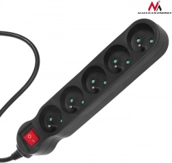 Stekkerdoos, verlengsnoer, 5 stopcontacten, met schakelaar, zwart, 1,4 m, Maclean Energy MCE183 2300W