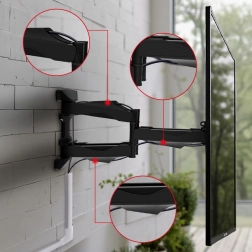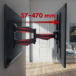 Deze duurzame muurbeugel maakt het gemakkelijk om uw tv in de woonkamer, slaapkamer of werkkamer te plaatsen. Dankzij de dubbele gewrichtsarm kunt u de tv 57–470 mm van de muur uittrekken, naar de gewenste hoek draaien en kantelen in het bereik van +2° tot -12° voor een perfect zicht zonder reflecties.