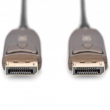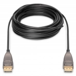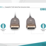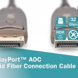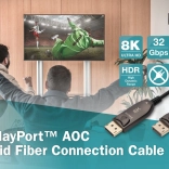 De actieve hybride DisplayPort AOC-kabel verzendt beeld en geluid in een resolutie tot 8K bij 60 Hz met een bandbreedte van 32,4 Gb/s over een afstand van 20 m. De hybride constructie van vezels en koper elimineert EMI-storingen, zorgt voor een verliesvrije en vertragingvrije transmissie, ondersteunt HDR, HDCP 2.2, EDID/CEC en biedt eenvoudige installatie met Plug & Play.