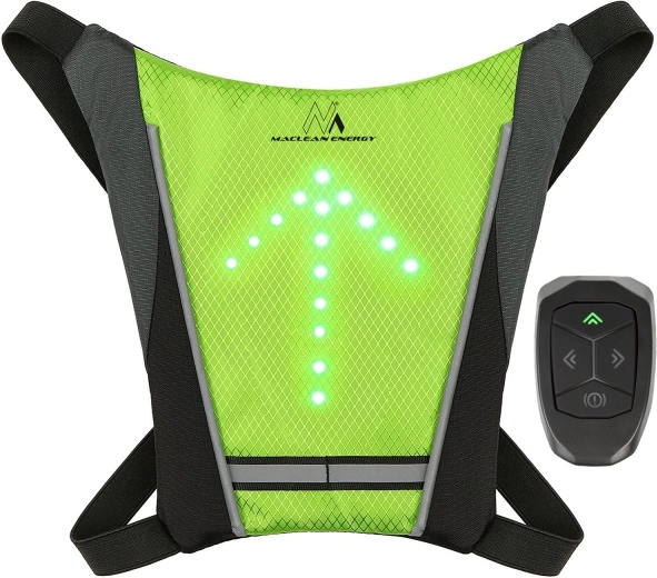 Vergroot je zichtbaarheid en veiligheid met het reflecterende LED-vest van MACLEAN ENERGY met ingebouwde richtingaanwijzing. De draadloze stuurbediening schakelt de rijrichting (vooruit, links, rechts) en het STOP-licht; het vest kan ook aan een rugzak worden bevestigd. De oplaadbare lithium-accu met USB-opladen is ideaal voor fietsen, wandelen en outdoor, zowel overdag als ’s nachts.