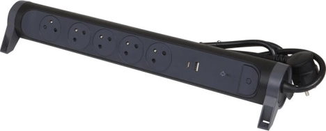 Regel uw stroomvoorziening slim en veilig. Deze zwarte stekkerdoos combineert vijf klassieke stopcontacten met twee USB-poorten (USB-A en USB-C), zodat u eenvoudig een laptop, lamp en telefoonoplader kunt aansluiten zonder extra adapters. Dankzij de kabellengte van 1,5 m bereikt u moeiteloos een wandcontactdoos, ook achter meubels.