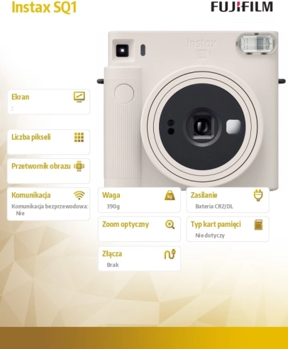Fujifilm Instax SQ1 is ontworpen voor iedereen die spontane momenten wil vastleggen met eenvoudige bediening en een compact design. Hij is uitgerust met een lens met een brandpuntsafstand van 65,75 mm en een lichtsterkte van f/12,6, wat fotograferen vanaf 30 cm mogelijk maakt. De speciale selfiestand met geïntegreerde spiegel maakt het eenvoudiger om zelfportretten te nemen. De camera gebruikt Instax SQUARE-film en wordt gevoed door twee CR2-batterijen, goed voor ongeveer 30 pakjes film van 10 opnamen.