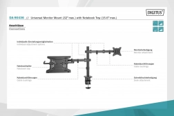 De houder maakt een individuele, ruimtebesparende en ergonomische montage mogelijk van een monitor met een schermdiagonaal tot 32"/9 kg en een laptop met een schermdiagonaal tot 15,6"/4 kg. De VESA-houder ondersteunt: De houder biedt twee montagemogelijkheden: zowel bureauklem als doorvoer zijn inbegrepen. Dankzij de snelspansluiting kan de VESA-plaat bij montage/demontage met een schroef worden bevestigd of losgekoppeld. Dankzij de geïntegreerde kabelgeleiding blijft de werkplek netjes.
