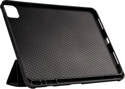 De innovatieve 4-delige schermcover is uitgerust met magneten voor automatisch sluimeren en ontwaken van de iPad bij het sluiten en openen van de hoes. Het voorkomt ook onbedoeld openen, wat het gebruik in video- of typemodus vergemakkelijkt. Dankzij de schokbestendige Anti-Shock-technologie met honingraatontwerp is je tablet beschermd tegen vallen. De buitenkant met textiellook en de microvezelvoering aan de binnenkant houden je display schoon.