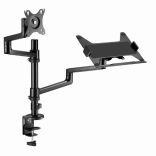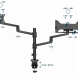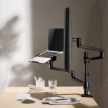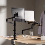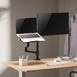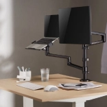 Eén arm voor een monitor van 17–32" (VESA 75×75/100×100), de andere met legvlak voor een laptop tot 17,3". Bespaar ruimte en creëer een perfect afgestemde werkopstelling.