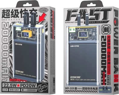 Stijlvolle en robuuste WEKOME Vanguard Series powerbank met een capaciteit van 20000 mAh biedt supersnel laden via PD 20 W en QC 22,5 W, twee ingebouwde USB‑C- en Lightning-kabels en een LED-display voor een duidelijk overzicht van de resterende energie. Dankzij geavanceerde beveiligingen laad je veilig meerdere apparaten tegelijk op, terwijl de compacte afmetingen het meenemen gemakkelijk maken.