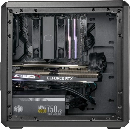 Het zijpaneel van 4 mm gehard glas laat je build schitteren. Achter het moederbordtray is 28 mm ruimte om kabels weg te werken en de luchtstroom te verbeteren.