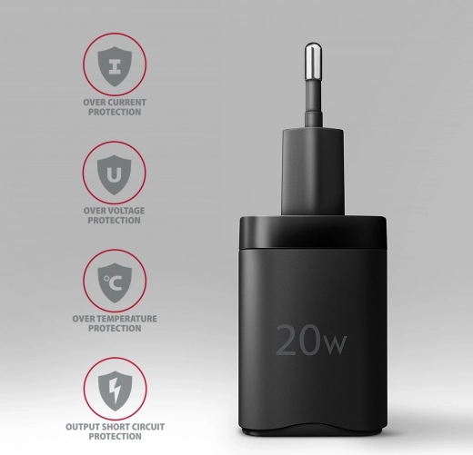 De compacte behuizing met prettig ontwerp en laag gewicht is ideaal voor in je broekzak of reistas. De functie WIV (Wide Input Voltage) zorgt voor betrouwbare werking in verschillende landen, terwijl de geavanceerde regeling AIC het aangesloten apparaat herkent en de optimale stroom en spanning kiest. Voor de veiligheid zorgt een set beveiligingen OCP/OVP/OTP/OSP en stabiele modi CV/CC.