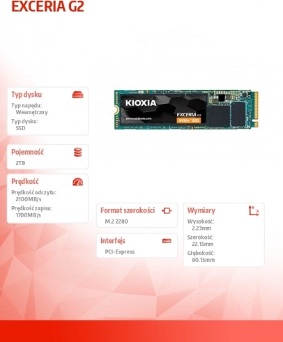 De nieuwe generatie Kioxia Exceria G2 SSD’s tilt de prestaties naar een hoger niveau. Met maximale sequentiële leessnelheden tot 2100 MB/s zorgt hij voor sneller opstarten, snellere bestandoverdracht en betere algehele systeemprestaties.