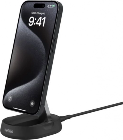 De draadloze oplader BoostCharge is een converteerbare magnetische oplaadpad met een vermogen tot 15 W. Qi2-technologie: optimaliseert het energieverbruik en verlengt de levensduur van de batterij. Je kunt de oplader gebruiken als pad of als standaard, met instelbare hoek.