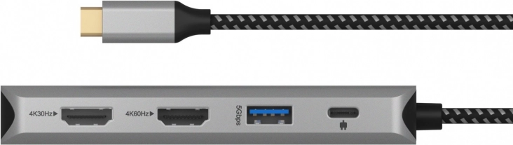 Deze multi‑poort dockingstation verandert één USB‑C‑poort van je apparaat in een universeel aansluitcentrum. Ondersteunt gelijktijdige aansluiting van twee monitoren via HDMI met resolutie tot 4K en een vloeiende verversingssnelheid, snelle USB 3.0 voor randapparatuur en externe schijven, en Gigabit LAN voor een stabiel netwerk. Dankzij pass‑through Power Delivery 100 W kan hij zowel je laptop als andere apparaten van stroom voorzien.