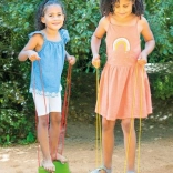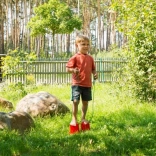 Het lichte ontwerp en de verpakking in een netje maken het eenvoudig om de stelten mee te nemen naar de speeltuin, het park of op vakantie – uitpakken en spelen maar.