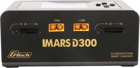 De Gens Ace IMARS D300 G‑Tech is een intelligente AC/DC-lader ontworpen voor zowel G‑Tech Eco-accu’s als reguliere packs. Hij herkent automatisch het type G‑Tech-accu, de spanning en de aanbevolen laadstroom, zodat laden snel, nauwkeurig en veilig is. Twee onafhankelijke kanalen maken gelijktijdig laden van twee accu’s mogelijk, tot AC 300 W of DC 2×350 W.