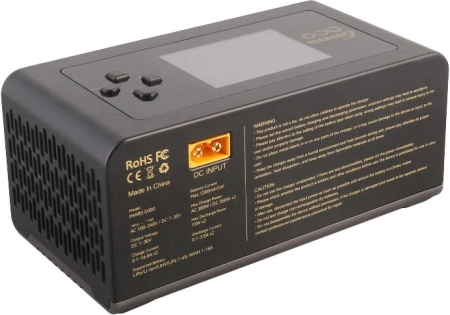 Krachtige dubbele lader voor modelbouwers met een vermogen van AC 300 W en DC 2×350 W. Ondersteunt LiPo/LiHV/LiFe 1–6 S en NiMH 1–16 S, biedt automatische G‑Tech-herkenning, 2,4" IPS-display, celbalancering en geavanceerde veiligheidsfuncties.