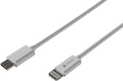 Natec Prati kabel USB‑C naar Lightning 2 m met MFi-certificering. Snel iPhone opladen, stabiele gegevensoverdracht en duurzame TPE-mantel. Wit.
