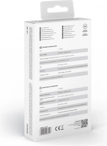 Savio LA-09 is een adapter die is ontworpen voor snel opladen van smartphones, tablets en andere apparaten. De universele compatibiliteit via de USB-C-poort zorgt voor probleemloos gebruik met verschillende merken en modellen. Dankzij de geavanceerde beveiligingssystemen tegen overbelasting, overspanning en oververhitting is het opladen van je apparaten maximaal veilig.