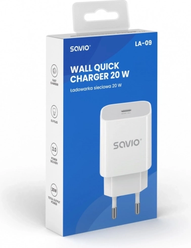 De compacte en krachtige Savio-adapter biedt snel en veilig opladen voor een breed scala aan apparaten dankzij ondersteuning voor Power Delivery 3.0 en Quick Charge met een maximaal vermogen van 20 W.