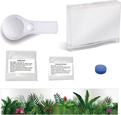 De verpakking bevat alles wat u nodig heeft om aan uw avontuur te beginnen: aquarium, voedingsgel, vergrootglas, plantensticker en handleiding. Aanbevolen voor kinderen vanaf 8 jaar.