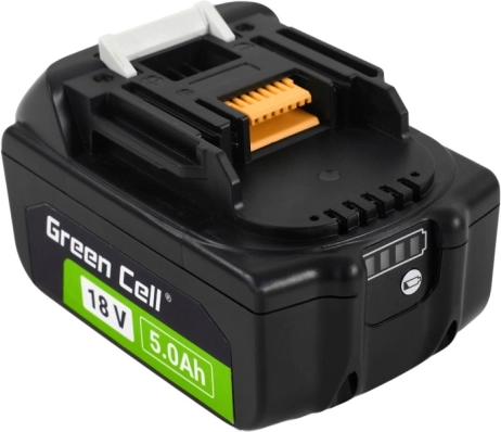 Betrouwbare vervangingsbatterij GREEN CELL 18V 5 Ah voor het MAKITA LXT-systeem biedt hoge prestaties, lange gebruiksduur en perfecte compatibiliteit met Makita-gereedschap en -laders. Dankzij hoogwaardige Li‑Ion-cellen, een robuuste constructie en een laadniveau-indicator krijgt u een stabiele werking zonder geheugeneffect en met een levensduur tot 1000 laadcycli.