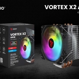 De CPU-koeler Savio Vortex X2 ARGB is een ideale keuze voor wie op zoek is naar een efficiënte en stijlvolle koeloplossing voor de pc. Met vier koperen heatpipes van 6 mm en een 120 mm ventilator koelt hij processors met een TDP tot 180 W.