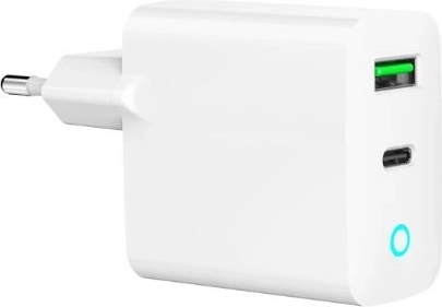 Compacte netlader met twee poorten, USB‑C en USB‑A, biedt een vermogen van 20 W voor snel opladen van telefoons en tablets. Ondersteunt USB Power Delivery (PD) en Quick Charge 3.0, voor efficiënt e... Meer tonen