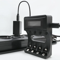 Ontworpen voor comfort en functionaliteit. Dankzij het lichte ontwerp en de compacte afmetingen is de AA- en AAA-lader eenvoudig mee te nemen, wat zorgt voor een betrouwbare stroombron onderweg, op het werk en bij outdooractiviteiten. U kunt batterijen altijd laden, via een powerbank of de USB-aansluiting in de auto, wat de ononderbroken werking van uw elektronische apparaten garandeert. Het praktische ontwerp voorkomt niet alleen dat batterijen eruit vallen, maar maakt ook eenvoudig plaatsen en uitnemen van accu’s mogelijk.