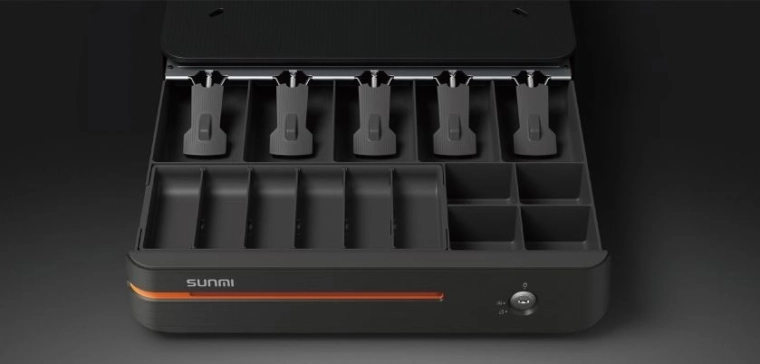 Dankzij de doordachte interne indeling biedt SUNMI MAX 5 vakken voor bankbiljetten, 4 vaste en 6 uitneembare muntvakken en een front media-invoer (bonnen, coupons). De lade is compatibel met meer dan 20 valuta’s. De robuuste constructie van roestvrije ABS met een trapeziumframe en interne honingraat draagt tot 10 kg en is getest op meer dan 1.000.000 cycli.
