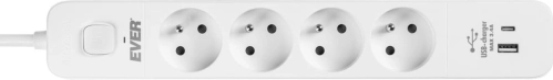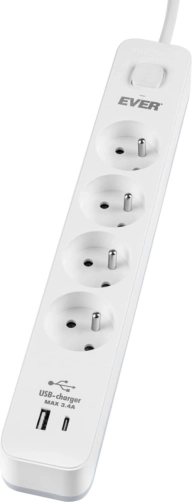 Bescherm je huishouden en kantoor met de overspanningsstekkerdoos EVER Protect met vier geaarde uitgangen en twee USB‑poorten (USB‑A + USB‑C). Dankzij de geïntegreerde snellader met een vermogen tot 3,4 A laad je eenvoudig smartphones, tablets en smartwatches op. Voor veilig gebruik zorgen de overspanningsbeveiliging, kinderbeveiliging, tweepolige schakelaar en LED‑indicator van de status van de beveiliging.