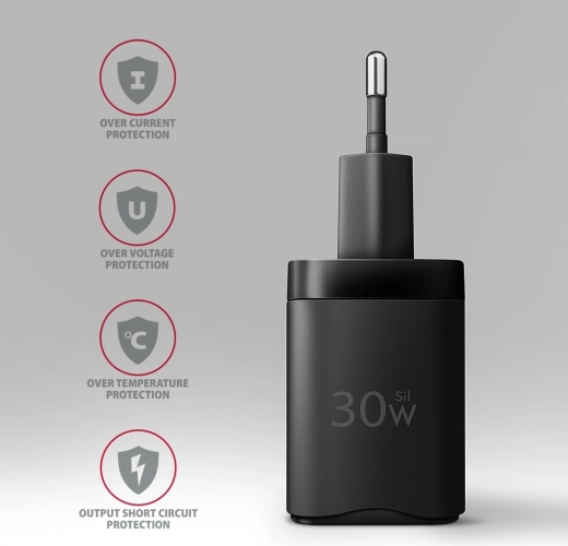 Deze lichte en compacte lader gebruikt moderne Si (Super Silicon)-technologie voor hogere efficiëntie, kleinere afmetingen en stabiel, veilig laden. De enkele USB‑C-poort levert tot 30 W, dus ideaal voor smartphones, tablets en geselecteerde ultrabooks.