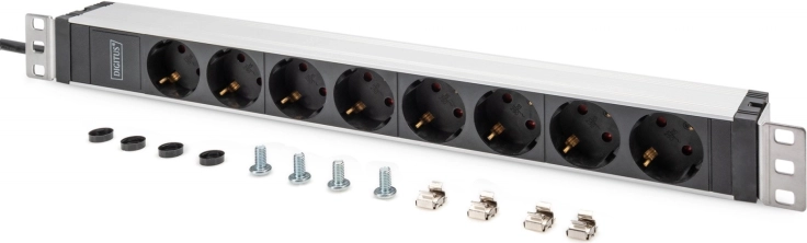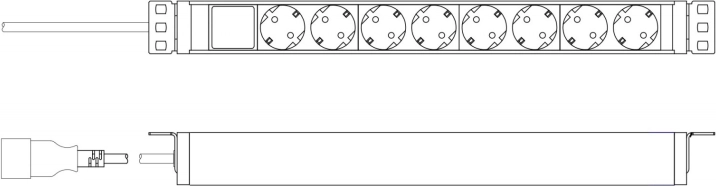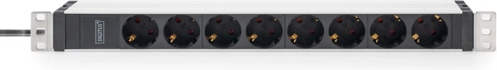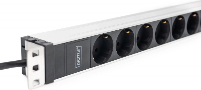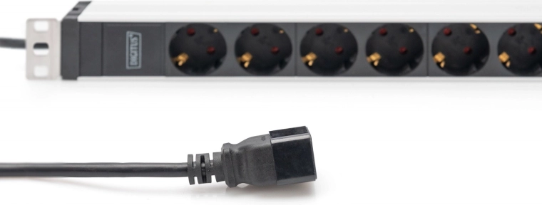 De IEC-60320 C20 invoer maakt directe aansluiting op een UPS mogelijk, terwijl acht Schuko-stopcontacten met een draaiing van 35° het aansluiten van ook grotere netadapters vergemakkelijken. De voedingskabel van twee meter vereenvoudigt de plaatsing in de kast en optimaliseert de bekabeling.