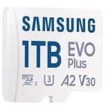 Breid de opslag van je telefoon, camera of console uit met de microSD-kaart SAMSUNG EVO Plus 1 TB met leessnelheden tot 160 MB/s, klassen U3, A2 en V30 voor vloeiende 4K‑video en snelle app-prestaties. Biedt brede compatibiliteit, 6-in-1 duurzaamheid tegen water, temperaturen, röntgenstralen, magneten, vallen en slijtage en wordt geleverd met een volwaardige SD-adapter.