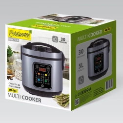 Ontdek de veelzijdigheid van koken met de MAESTRO MR-794 multicooker. Dankzij de capaciteit van 5 l, het vermogen van 900 W en 30 automatische programma’s bereid je soepen, rijst, stoofgerechten, desserts en oven-/bakgerechten. Touchpanel, elektronische temperatuurregeling en timer zorgen voor nauwkeurige resultaten zonder moeite.
