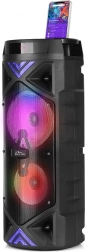 Karaokeliefhebbers waarderen de 6,3 mm microfooningang met volumeregeling en ECHO-effect. Met de afstandsbediening heb je alle functies onder controle zonder naar de speaker te hoeven lopen. Gekleurde LED-effecten geven elk feest de juiste sfeer.