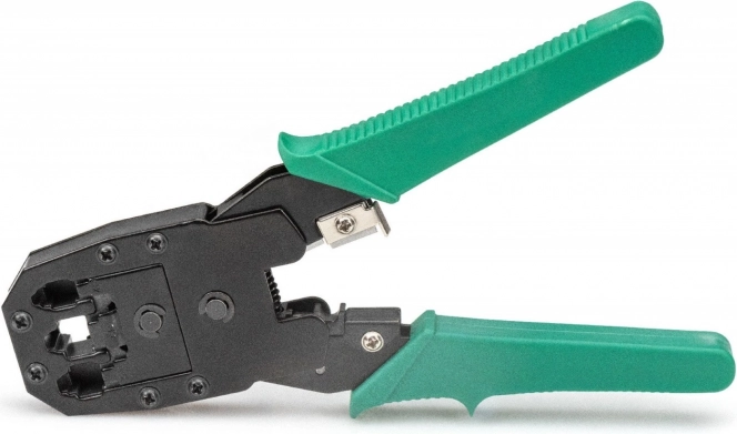 Duurzame krimptang met ergonomische handgrepen zorgt voor een stevige en betrouwbare afwerking van netwerkkabels, inclusief geïntegreerde knip- en stripfunctie.