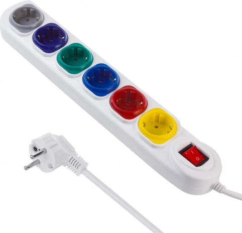 Zes gekleurde stopcontacten maken het gemakkelijk om aangesloten apparaten te herkennen en geven een esthetische uitstraling.