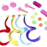 • Complete set accessoires – kam, “krultang”, speldjes en gekleurde lokken.