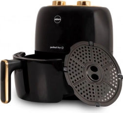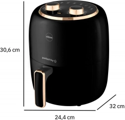 Eenvoudige bediening dankzij twee draaiknoppen voor temperatuur en tijd. Beschikbaar zijn 7 automatische programma’s, waaronder friet, vis, steak en muffins bakken, plus een handmatige modus voor maximale controle. De uitneembare mand en het rooster met antiaanbaklaag maken reinigen eenvoudig, terwijl BPA‑vrije materialen, een koel handvat en een thermisch geïsoleerde behuizing zorgen voor veiligheid.